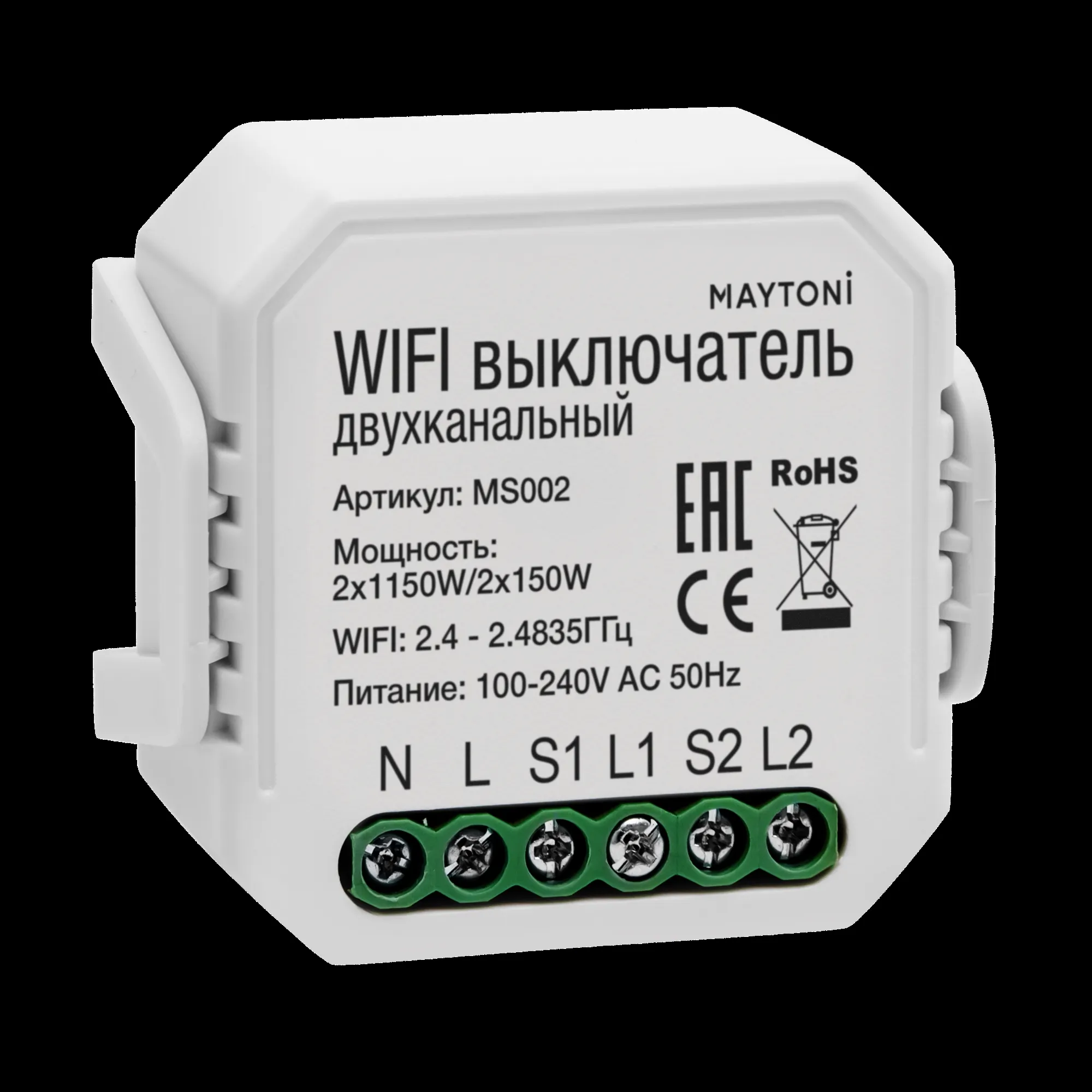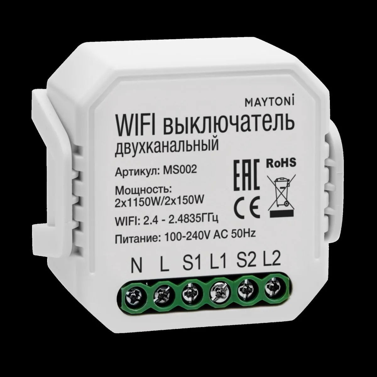 Wi-Fi выключатель двухканальный Maytoni Technical Smart home MS002 купить в Волгограде по лучшей цене