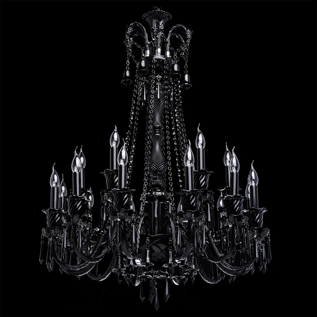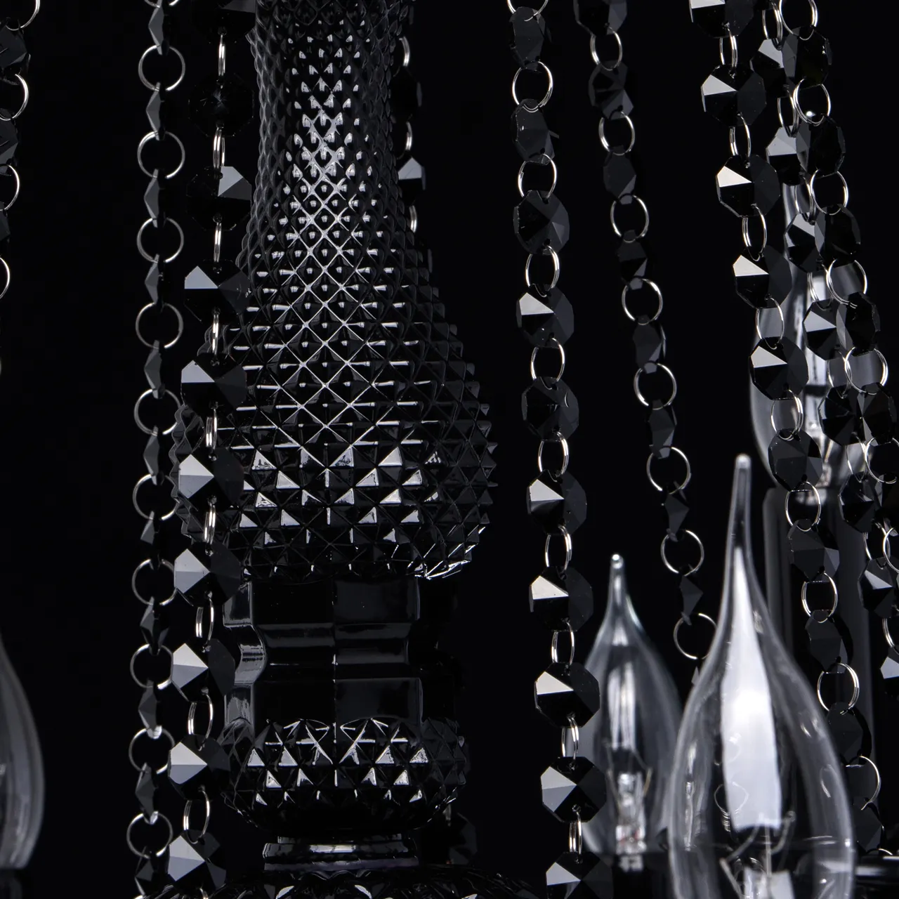 Стеклянное основание, декоративные элементы из черного стекла и хрусталя